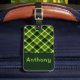 Elegant Pea Green Plaid Monogram Luggage Tag