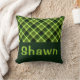 Elegant Pea Green Plaid Monogram Throw Pillow