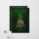 Elegant, striking and timeless holiday design featuring pine tree in gold gradient embossed style with "Peace on Earth" custom gold calligraphy script on glowing deep green artisan background with two lines of editable text and complementary graphics on back. All graphic elements are editable.