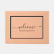 Elegant welcome Doormat with a black script on an orange (peach fuzz) background. Personalize with your family name or text.
