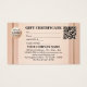 Elegant business card sized gift card voucher in peach and blush pink with a rose gold lining. A logo template as well as a QR code template are added for your convenience. Beautiful for a beauty salon, massage therapist or a retail business catering to a female clientele.