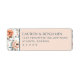These return address labels feature a soft peach background with delicate floral borders, creating an elegant and romantic aesthetic. The design includes large peonies in shades of pale orange and cream, complemented by green foliage, arranged symmetrically to frame the central text area. A sophisticated serif font adds formality, while the balanced layout ensures clarity and grace. Perfect for formal occasions, these labels convey warmth and celebration through their harmonious color palette and gentle floral imagery.