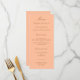 Elegant Peach Golden Beige Wedding Menu, please personalize as required using the online personalization template before ordering. Once you have entered your wording into the personalization template, should you find that you need to adjust the positioning of the text then please use the "customize further" option to "Edit using the Design Tool" (the button is available by scrolling down in the personalization template). An elegant menu featuring stylish text in a golden shade of beige (faux gold / gold look) on a lovely peach colour background.