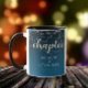 Make your special day an unforgettable celebration with this simple but stylish mug, which features elegant handwritten and block lettering in peach with a shower of confetti set on a black to mykonos blue background. Customize as desired.