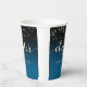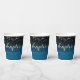 Make your special day an unforgettable celebration with these simple but stylish paper cups, which feature elegant handwritten and block lettering in peach with a shower of confetti set on a black to dazzling oceanic shade of blue evocative of the Mediterranean background. Customize as desired. Reverse shows identical design.