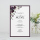 Créez le cadre parfait de la réception avec ce menu branché de 5,5 x 8,5 pouces, avec un bouquet de fleurs de prune, lavande et mauve et de verdure botanique, et bordée de prune violette. Personnalisez vos détails accentués par une belle calligraphie à la main moderne. Parfait pour, mais pas limité à, ce mariage de jardin et de jardin. Fait partie d'un ensemble correspondant. Voir la collection complète ici : https://www.zazzle.com/collections/plum_purple_floral_watercolor_calligraphy-119555439716895357 Contacter le concepteur pour les produits correspondants. Copyright Invitations élégants, tous droits réservés.