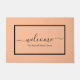 Elegant welcome doormat with a black script on a trendy peach background. Personalize with your family name or text.