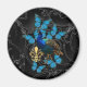 Elegant Peacock and blue butterflies on black Magnet