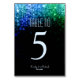 Elegant blue and green peacock colour shining lights on romantic bokeh background wedding table number card. This beautiful bokeh lights design is available in many different colours and you can request any colour of this design by email. Or contact me for any support in design customization. Matching products available.