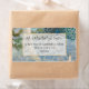 "Elegant Peacock Feathers White Blue Gold Mariage grand format étiquette d'adresse de retour." Cette taille fonctionne bien sur l'avant ou le dos de votre enveloppe pour un look plus décoratif. Elégante calligraphie de script avec bordure brillante de parties scintillant d'or et élégants paons botaniques blancs et bleus peints dans un style impressionniste. Graphiquement conçu par Audrey Jeanne Roberts, artiste et designer de renommée internationale, copyright.