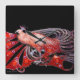 ELEGANT PEACOCK IN RED AND BLACK SQUARE WALL CLOCK