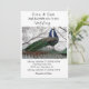Capture the essence of elegance and natural beauty with this stunning wedding invitation featuring a pair of majestic peacocks perched gracefully on a rooftop. The vibrant plumage and intricate feather patterns create a breathtaking display. The background features bare tree branches against a cloudy sky.