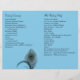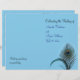 Elegant peacock feathers decorate this wedding program on a turquoise background. It is printed on the lightweight flyer paper so that it is easy to fold in half.