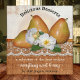 Recipe binder featuring an elegant design with pears and roses on a burlap and white wood background with lace. Beautiful for dessert recipes.