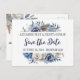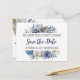 This beautiful Save the Date postcard is the first your wedding guests will see of your wedding to come. This design of watercolour roses, peonies and pampas in blue & ivory creates an elegant statement for your future wedding guests.