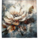 Transform your bathroom with this elegant watercolor of a creamy white peony, its dark swirling center framed by brown-green leaves on a textured blue-gray background. Ideal for floral enthusiasts, it adds a sophisticated, dreamy touch to any space.