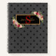 This beautiful notebook features a chic and elegant black polka dot pattern with roses surrounding a gold frame, and can be personalized to make it uniquely yours.