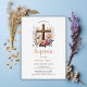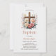 Honour the blessed occasion of your baby girl's baptism with this elegant and traditional invitation. Featuring a beautifully designed cross surrounded by soft pink and cream flowers, this personalized card is perfect for celebrating your daughter's special day. With a focus on Catholic and Christian faith, this invitation provides all the important event details, including the church ceremony and reception. Perfect for families seeking a meaningful and timeless way to announce this religious milestone with loved ones.