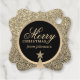 Modern, elegant, luxury, black and gold glitter personalized Christmas gift tag, with modern calligraphy script and pine tree star on the top.