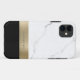 Modern iPhone case with faux gold metallic stripe, black and white marble background. You can add your name or any other text.