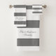Elegant Personalized Grey and White Stripes Bath Towel Set