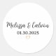 Add a touch of elegance to your wedding celebration with these personalized round white stickers. Featuring the initials of the bride and groom, these stickers are perfect for sealing invitations, decorating favours, or adding a personal touch to any aspect of your wedding. The classic round shape and clean white background provide a sophisticated and timeless look that complements any wedding theme. Customize the stickers with your initials and make every detail of your special day unique.