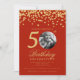 Elegant Photo 50th Birthday Gold Confetti Red Invitation
