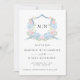 Élégant Photo Bleu Monogramme Save the Date - avec un magnifique blason de mariage floral avec le monogramme des futurs mariés. Les save the date classiques présentent une typographie moderne pour un rendu propre et minimaliste. Le verso du save the date présente une photo du couple heureux. Quelle belle façon d'annoncer la date de votre mariage à votre famille et à vos amis.