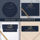 Modern and classic dark blue and gold college graduation announcement and party invitation featuring a photo of the graduate, their name and class year in an elegant script and their university, major and honours. On the back, add your grad party details.