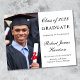 Budget-friendly simple and modern college graduation announcement featuring a photo of the graduate, his or her name and class year in an elegant script and his or her university, major and honours.