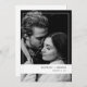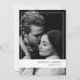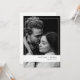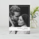 Celebrate your special day with our Elegant Photo Frame Wedding Invitation Card. The front features personalized names and wedding date elegantly displayed in black sans serif within a white block shape, complemented by a full couple photo background in vertical orientation. A delicate frame border in light grey adds a touch of sophistication. On the back, wedding details are beautifully presented in black sans serif and script font typography against a crisp white background. This custom invitation card is perfect for inviting loved ones to share in your joyous occasion.