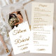 This elegant wedding program feature a space for a photograph of you and your soon-to-be spouse, and text in a classic and sophisticated gold script.