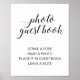 Photo guest books are so much fun! Instead of having the usual guest book, put a unique twist on it with instant photos that your guests take of themselves and then sign. Help your guests to add their photo to your guest book by placing this elegant sign next to the camera. This design, with the wording "photo guest book Strike a pose Snap a photo Place it in guest book Leave a note" is perfect to let them know instructions. Wording on the bottom is customizable. Part of the Alejandra collection.