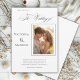 Announce your special day with our stunning Black & White Wedding Invitation featuring an elegant script and a personalized photo of the happy couple. This classic design exudes sophistication and romance.