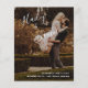 Modern wedding program featuring a simple design with your names in an elegant handwritten script at the top left and your wedding details in right alignment at the bottom right, over your favourite photo. The backside has your order of ceremony, wedding party and thank you message in black over a white background. The chic hand lettering adds a romantic touch to this minimalist design. These cheap wedding programs are printed on sheets of paper for a budget friendly option.
