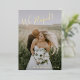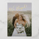 Simple Elopement Reception Invitation with "We Eloped!" in an elegant handwritten script across the top left and your names and wedding date in the bottom right, over your favourite photo. All text on the front is in real gold foil. The backside has your event details in black over a white background. The chic hand lettering adds a romantic touch to this minimalist design. This reception invitation is great if you are already married and want to celebrate with family and friends.
