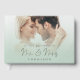 Elegant Photo Overlay Wishes New Mr Mrs Sage Green. Perfect for your guests to write their good wishes on your wedding day for you to look back on in the years to come. This minimalist design has elegant set script for Mr and Mrs and the rest of the text can be easily personalised, including the words on the back cover. Simply replace the sample photo with your own.