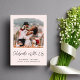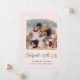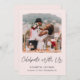 Elegant light pink elopement or smaller wedding announcement and post-wedding party or reception invitation. The front features your photograph, "Celebrate With Us" written in a chic script and your first names, wedding date and location in simple modern typography. On the reverse side, personalize your wedding or elopement announcement in more detail, add a reception or party invitation and sign your married names in a signature-like script.