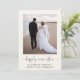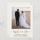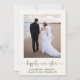 Elegant and chic light cream elopement or smaller wedding announcement and post-wedding reception or party invitation. The front features your photo, "happily ever after" written in a stylish script with swashes and your first names, wedding date and location. On the reverse, personalize your wedding announcement, add a reception or party invitation, input your wedding website address to create a QR code for guests to scan to RSVP online and sign your married names in a signature-like script.