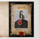 Create your own red black and gold quinceanera invitations using a luxurious, editable DIY template easily customized with 3 photos / pictures and personalized wording. The unique, dark floral design with original art by Raphaela Wilson showcases old vintage scroll parchment paper, beautiful red watercolor roses and faux metallic gold accents for the princess tiara, crown, fancy filigree dress border, and sparkle circle confetti. The English verbiage can be changed to Spanish wording, and with more than enough space across 6 card panels, easily add reception / program details, rsvp information, the guests to whom you'd like to express a heartfelt thank you to, multiple glamourous Mis Quince Anos pictures, etc. Should you wish to add some whimsical butterflies, edit the dark fairy tale design further to reveal gold butterfly confetti. While you're there, you can also reposition different graphics, change background colours and more to create elegant tri fold invitations just right for your ranchera or goth quince. With some creative rewording, this trifold invites can be ideal for goth weddings, a masquerade sweet 16 birthday party, or other magical fairy tale moments. Additionally, feel free to edit the typography style - changing the modern fonts and calligraphy script to be suit your fancy. Enjoy! Category: elegant quinceanera invitations with red roses; gothic quinceanera invitations with photos; and black quinceañera birthday invitations with pictures. Traditional Mexican red, gold and black themed quince colours: dark red, burgundy, light brown, tan, beige, ivory, champagne yellow gold, and black.
