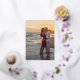 Modern photo save the date card in Spanish with your full bleed vertical picture featuring a text overlay with "Reserva la Fecha" in a thin handwriting script font along with two lines of text for your wedding details. All text on the front is in real gold foil. The backside has a faux gold and white abstract pattern and may be removed in the design editing tool. A simple yet elegant design that makes your photo the main feature.