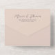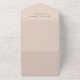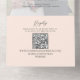 This design features a simple minimalist modern elegant blush peach coral, with a QR code rsvp online website, a vellum photo picture overlay style, blush peach romantic colours, a stylish trendy calligraphy script font, a modern guest response reply online, a tri-fold wedding invitation template, an elegant seal and send design, a photo wedding invitation template, a simplistic solid colour white text