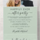 Chic sage green elopement or private wedding announcement and wedding reception invitation. This design features your photo, "Happily Ever After Party" in a mix of simple typography and an elegant script with swashes and simple modern typography. Add your names in a signature-like script. A tear away RSVP postcard provides a convenient envelope-free response from your guests.