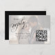 This wedding's RSVP card features a timeless black and white design with a refined photo template and classy typography for a modern yet classic touch. The elegant calligraphy script and built-in QR code guide guests directly to Our Website Weddings for an easy online response. With its simple, minimalist layout and elegant RSVP style, this card is perfect for couples seeking chic, functional, and stylish wedding stationery.