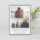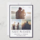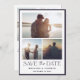 This is an elegant and classic wedding save the date card using an elegant and modern font along with three photos and an elegant border. The reverse side includes a message that you can personalize, along with another photo.