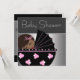 Adorable pink and black baby shower invitations. This cute pink and grey African American baby girl shower invitation is easily customized for your event by simply adding your event details, font style, font size & colour, and wording. Please note - all of the stickers, cards and invitation designs you will find on Zazzle are printed graphics with no actual jewels, bows, raised, embossed, or added parts or pieces.