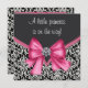 Elegant pink and black with black damask pink bow baby girl princess baby shower invitation. This adorable pink and black damask baby shower invitation is easily customized for your event by adding your event details, font style, font size & colour, and wording.