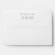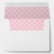 Custom white wedding envelopes feature a pink and white geometric lattice pattern that is printed on the inside flap and formal style warm pewter grey return text on outside of the back flap.