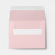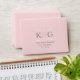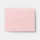 Custom light pink A2 wedding reply mailing envelopes feature a scroll framed monogram design of the bride and groom's first name initials. Light pink, white, and pewter grey colour scheme.