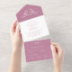 Elegant Pink and White Monogram Wedding All In One Invitation